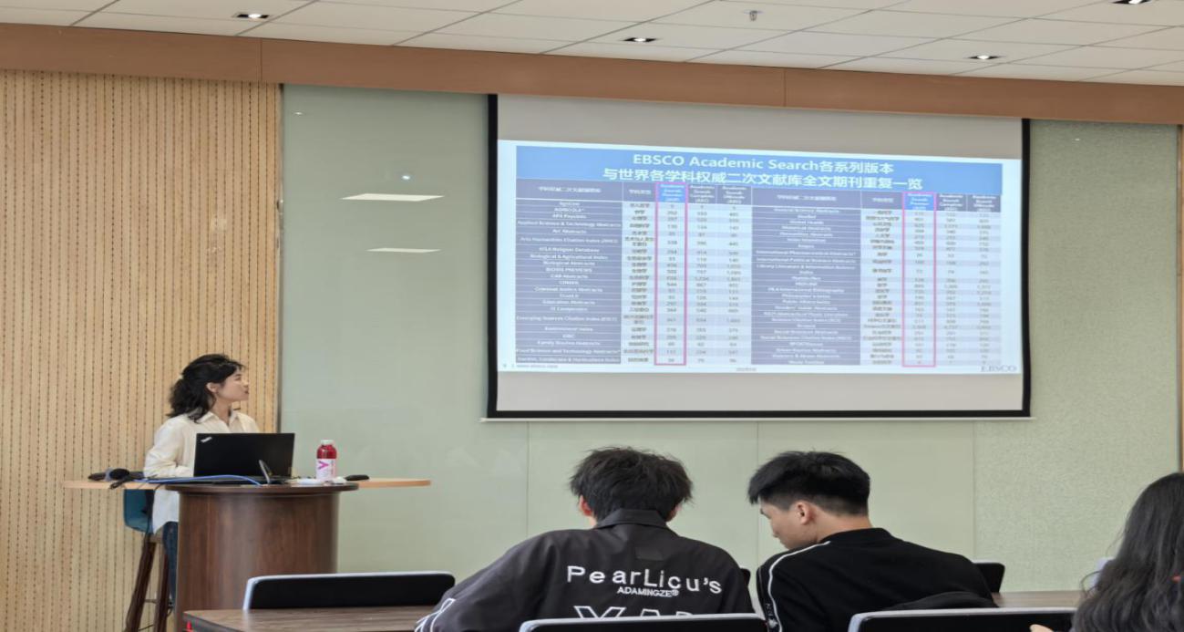 4月25日图书馆在经纬馆学术报告厅,举办两场EBSCO外文期刊数据库培训,助力师生提升外文文献检索能力与科研效率。