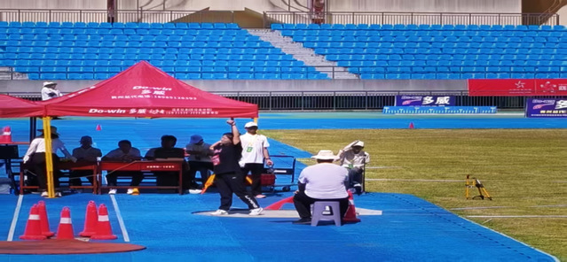 甲组男子铅球选手王青山,站在投掷圈中,肌肉紧绷蓄力的瞬间,蕴藏着无穷的力量。当铁球腾空划出完美抛物线,落地的那一刻,便是他向赛场宣告胜利的宣言,第六名的成绩,是力量与坚持的最好回报。