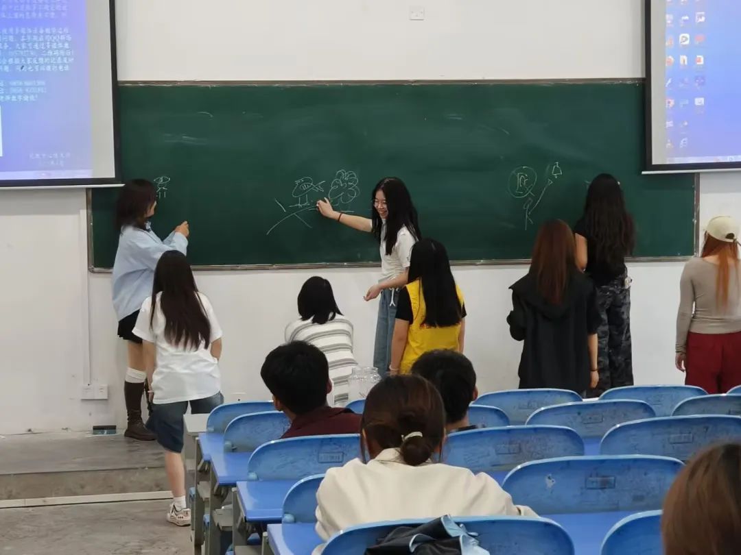 当欢快的音乐响起,玩偶在众人手中快速传递。随着音乐毫无预兆地突然暂停,玩偶总能精准“锁定”幸运儿,瞬间将现场气氛推向高潮。惩罚环节不仅没有让人感到尴尬,反而秒变暖心现场:被“选中”的参与者或分享自己如何广交朋友的技巧,或表演一段趣味十足的即兴小节目,引得全场笑声爆棚。有同学忍不住感叹:“太刺激了,那个绿油油的玩意突然就飞我手里了!本以为会很社死,结果大家一起哈哈哈,紧张感一下子就没了!”在充满欢乐与惊喜的互动中,同学们打破了彼此间的陌生与隔阂,逐渐敞开心扉,现场弥漫着轻松融洽的氛围。