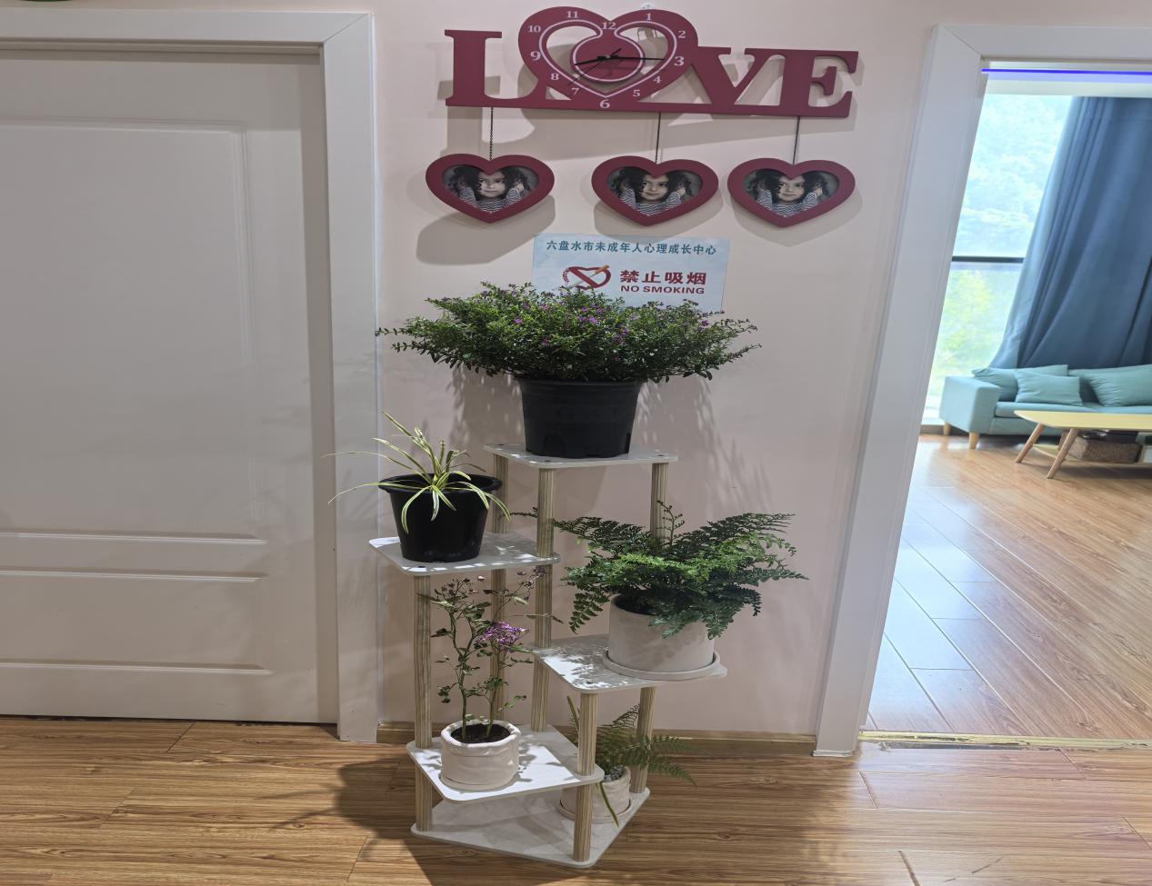 活动开始后,在付小庆、徐敏老师的带领下,学生团队沉浸式参观心理中心情绪疏导室、团体辅导区等功能空间,直观感受静谧氛围与开放场景的情绪调节特性。经现场勘察后,师生共同选定5处微景观造景点位,正式开启劳动实践。活动中,各小组分工协作、各展所长:木工组精心打磨原木花架,将零散的木棒、木板搭建为温润置物架;绿植组深入校园采集蕨类、兰花等植物,依据色彩与形态进行创意搭配;种植组则结合植物特性与造景环境,精准设计种植方案,为景观注入巧思。"当荒置的角落变成生机盎然的小花园,我真切感受到自己的创造力与行动力。"参与学生的分享,道出了劳动实践带来的强烈自我效能感。